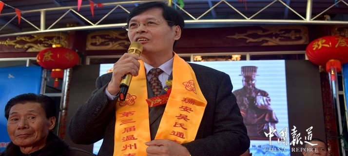 中国报道讯(记者吴蜀丰)冬日的阳光呈现一派祥和的温馨,人山人海的吴家人伴随锣鼓喧天的喜气氛围,中埠吴氏宗祠彰显热闹非繁的浓郁景象。第三届温州泰伯文化节暨瑞安吴氏文化研究会《瑞安吴氏通志》首发庆典今日(2018年1月13日)在浙江瑞安市东山街道中埠吴氏宗祠成功举行。