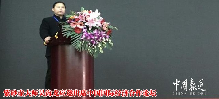 中国报道讯(记者吴蜀丰)为深入贯彻国务院办公厅《关于积极推进供应链创新与应用的指导意见》、商务部办公厅财政部办公厅《关于开展供应链体系建设工作的通知》等文件精神,由中国国际经济合作学会供应链金融委员会主办的中国国际经济合作论坛暨中国供应链金融论坛2017年会,于2018年1月11日下午14:00在中国在全国人大会议中心礼堂举办。中国紫砂壶大师吴海龙应邀出席中国国际经济合作论坛会议。本次会议主题为“发展供应链金融、重塑全球价值链”,旨在加快供应链金融体系建设,促进供应链信用服务,推进供应链全球布局。