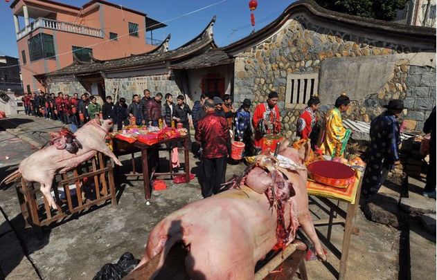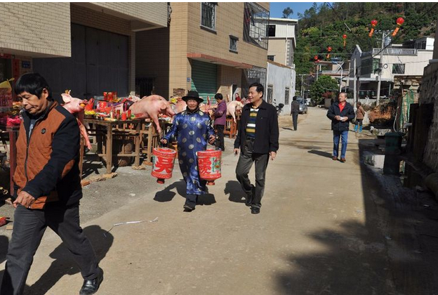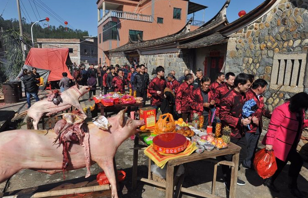 农历丁酉年十一月二四,是厦门同安汀溪镇造水村郑宅“谢天地"习俗。
