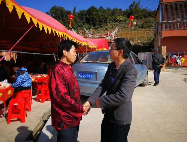 厦门吴氏宗亲会会长吴国荣愽士、吴金武副会长、埭头吴万年宗长专程前来祝贺郑宅吴氏”谢天地“习俗取得圆满成功,吴荣真、吴文海、吴稳水、吴文森等及锣鼓队前往迎接。