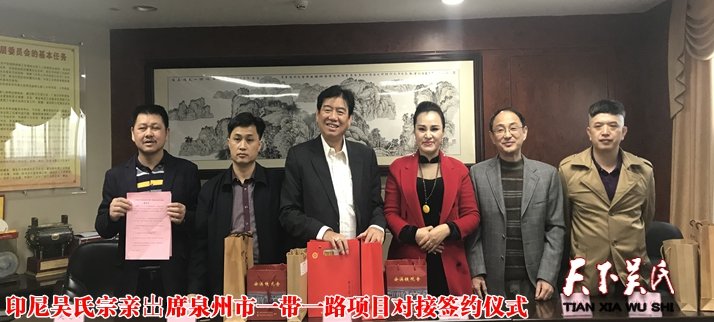 天下吴氏讯(特约采编 吴建法)日前,印尼吴氏宗亲总会会长,闽南同乡会理事长吴明理出席在泉州市政府召开一带一路项目对接签约仪式,下午到安溪参观吴氏三和企业的茶文化博物馆,走访吴氏茶企茶店,共谋中印两国的经贸合作意向。