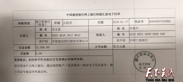 昨日,吴文富博士为天下吴氏网捐助1万元人民币,吴文富说,为吴氏传递正能量的公益性网站,需要足够的人力物力支撑以保持正常运行,更需要更多的吴氏宗亲给予鼎力帮助,自己既然作为天下吴氏网总顾问不能总挂个虚名,更不能顾而不问,同时也希望天下吴氏网一如继往为传承吴文化唱响时代主旋律,成为天下吴氏宗亲强有力宣传阵地之一。同时更期待天下吴氏宗亲精诚团结﹑互帮互助﹑共谋发展﹑共创辉煌!