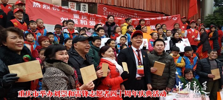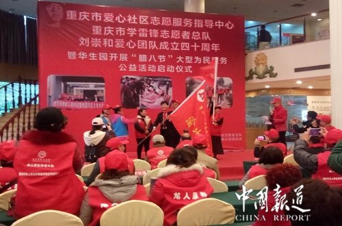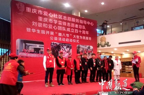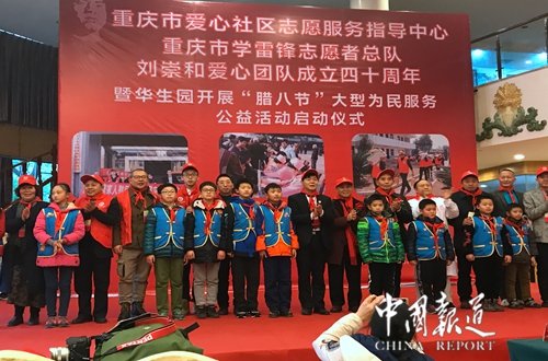 中国报道讯(记者 吴蜀丰 田雪琴 特约采编 吴天下)不忘初心、牢记使命、践行十九大精神、永远跟党走、学习雷锋精神志愿服务、走进公益新时代。重庆市爱心社区志愿服务指导中心,重庆市学雷锋志愿者总队刘崇和爱心团队成立四十周年大型为民服务活动启动仪式今日(1月20)在大渡口新山村凤祥路华生园社区隆重举行。