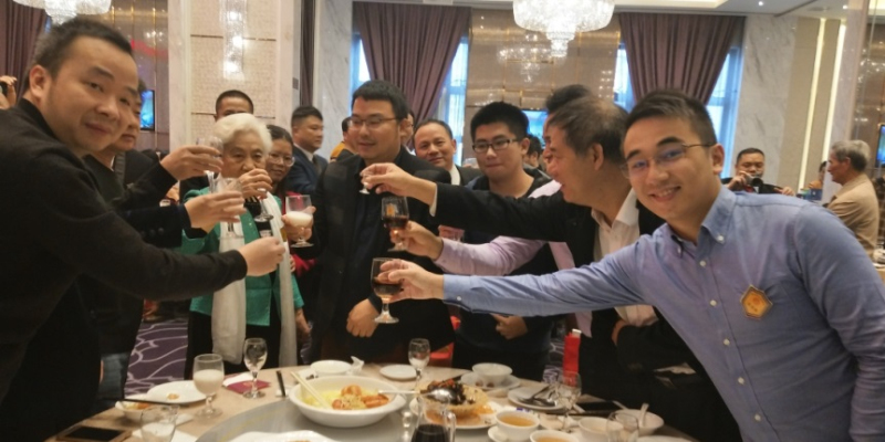 深吴会的宗长们及吴桂贤宗姐向与会宗亲祝酒