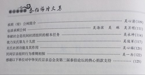 全国首届“泰伯论坛”于2014年在吴氏祖居地无锡举行,至今已历三届。三届“泰伯论坛”拟定三个主题,汇集了三本《泰伯论坛文集》。每一本文集的建树,都代表着组织者、参与者的水准与境界,凝结着他们的汗水与智能。在此,我们向前三届的组织者、参与者,致以诚挚而崇高的敬意。