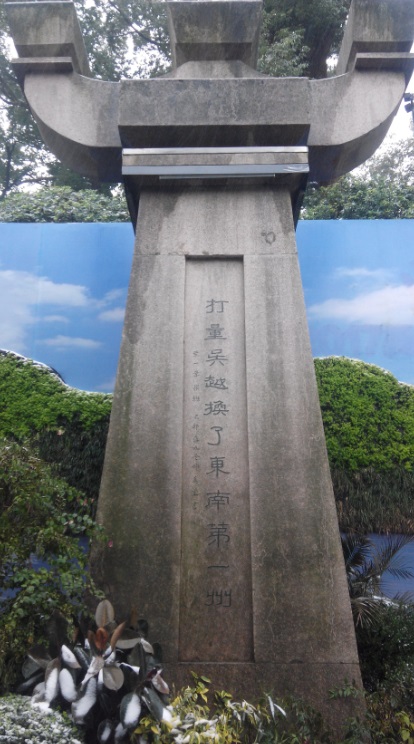 在三茅观旧址不远处,是“吴山第一峰”的摩岩石刻,吴山之中,山石很多,所以自古留下的石刻也多,据介绍,“吴山第一峰”这五个字,是朱熹所书。北宋时期福建崇安著名词人柳永写下《望海潮》: 东南形胜,三吴都会。三秋桂子,十里荷花。这首词在一百年后,引发了金国第四任皇帝完颜亮写出了“提兵百万西湖上,立马吴山第一峰”的诗句,比完颜亮小八岁的朱熹,却因此而提笔写下了“吴山第一峰”五个字,留到了现在。