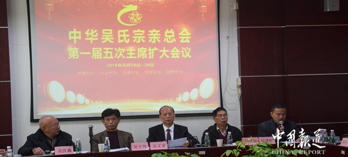 中国报道讯(记者吴蜀丰特约撰稿 吴谨程 特约采编 吴天下)元月26日,中华吴氏宗亲总会一届五次主席会议在晋江金冠园(集团)召开,华吴各分会、全国主要吴氏宗亲社团代表共70多人聚首侨乡晋江,共同谋划发展战略。