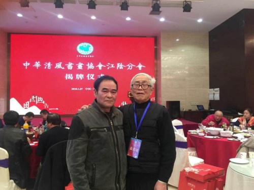中华清风书画协会李坤泽主席与艺术顾问吴卫祖在江阴分会挂牌仪式期间的合影