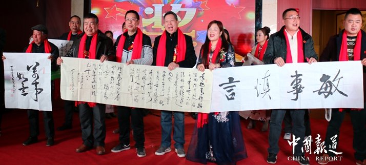 今晚难得飘雪花,宗亲再聚迎春哒。畅谈鸡岁访乡路,共话狗年走天涯。朗之诵之乐火火,歌也舞也笑哈哈。欣逢盛世重文化,天下吴氏是一家!