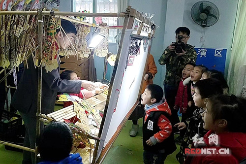 湘潭非遗传承人吴升平、吴渊祖孙带着纸影戏走进幼儿园