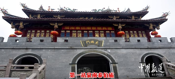 第一站泉南泰伯庙。泉南泰伯庙建筑群位于晋江市灵源街道灵源山上,依山面海,气势磅礴,坐甲向庚兼寅申,占地面积15000平方米,耗资千万,由闽南延陵始祖泉南轮祀会于甲申年(公元2004年)春节倡建,海内外吴氏族亲鸠资千万元,丁亥年(公元2007年)首期工程竣工。