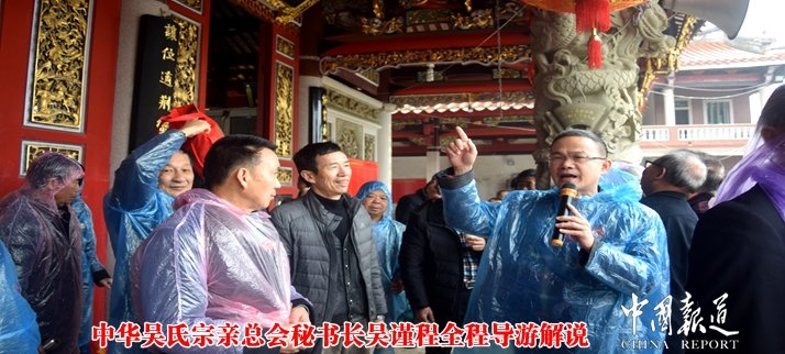 中国报道讯(记者吴蜀丰特约通讯员 吴佳佳)元月27日,中华吴氏宗亲总会“圆梦中华·晋江吴文化生态行”考察活动在晋江举行,考察点包括泉南泰伯庙、灵源寺、灵水古村落、灵水吴氏家庙、围头故事馆、围头毓秀楼(八·二三炮战遗址)、凤文吴氏宗祠等晋江独具特色的吴文化生态圈,并在泉南泰伯庙举行了简约的拜祖仪式;参加华吴一届五次主席会议的高层领导及嘉宾六十多人参加了本次考察活动。