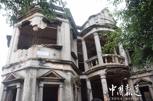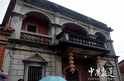 建于民国时期、中西合璧的“话桑别墅”,三开间的古大厝沿袭闽南古民居的规制,护厝却是两层高钢筋混凝土的番仔楼。古厝里的一副对联为我们道出了厝主人的来历:“寄迹香江怀梓里,经商加国念侨乡”。