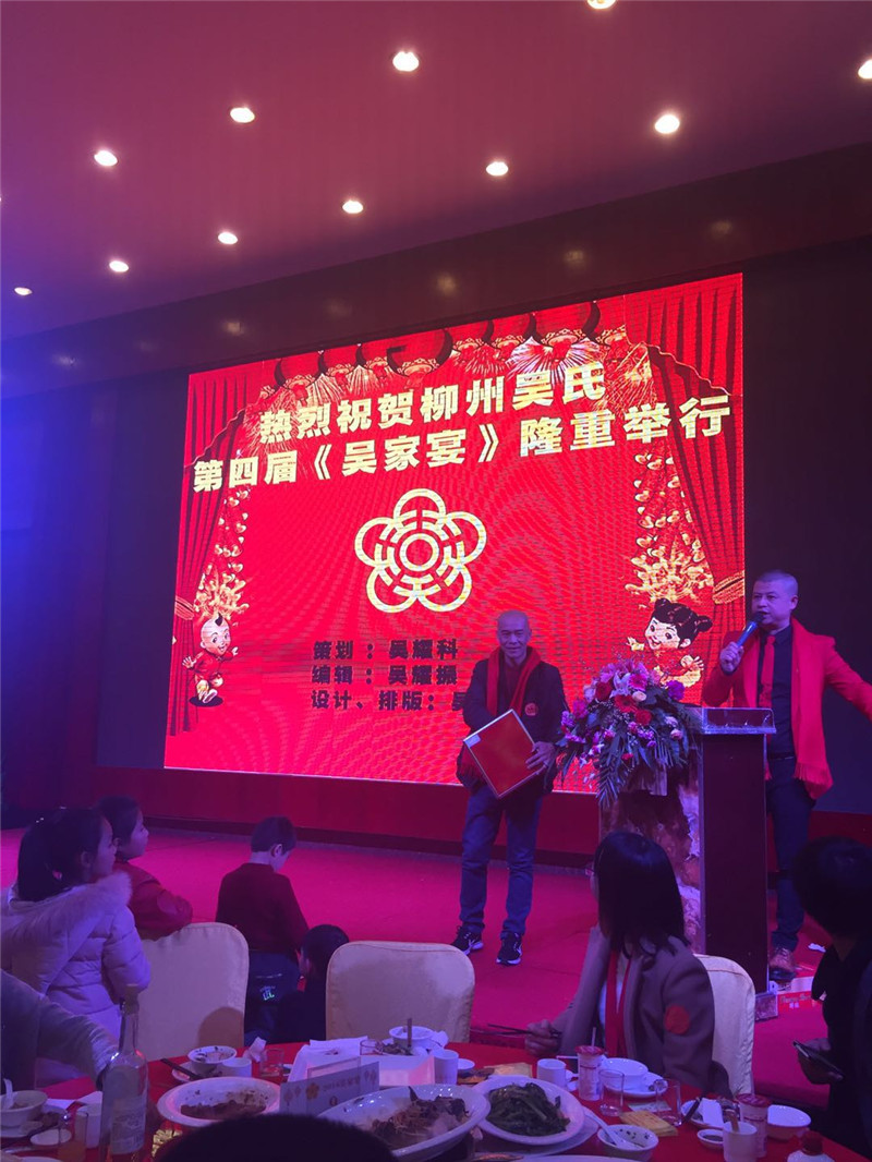 2018年2月3日,广西柳州吴氏第四届《吴家宴》在柳州三中路金惠大酒楼举行。广东珠三角吴氏宗亲总会常务副会长吴镇添为团长,带领副秘书长吴长根、吴长财和吴涌君宗长四人前往参加这次盛宴,并带上宗谊、带上广东珠三角品牌“吴氏陈皮·小青柑茶” 展开宗谊交流和兴业中华·商贸品牌推介合作探索之旅。