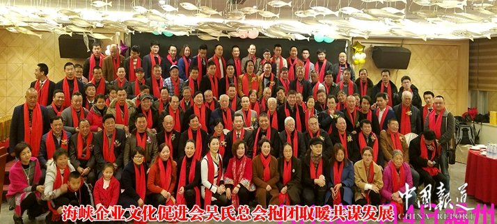 中国报道讯(记者吴蜀丰)民安国泰逢盛世 ,风调雨顺颂华年!日前,海峡企业文化促进会吴氏总会迎来了第一个周年庆。来自香港、贵州、海南、浙江、广东、江西等吴氏宗亲代表和福建省内、祠堂宗祠宗亲代表及特邀嘉宾150多名欢聚在美丽的福会建省福州市参加海峡企业文化促进会吴氏总会团拜会暨吴氏宗亲恳亲会。会场上宗亲相聚,充满激情和快乐,大家欢聚一堂,叙说亲情、共谋发展大略!