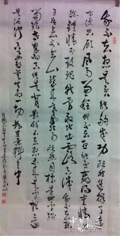 记者你精通气功,不仅贾医生想不到,跟你认识这么久,我也没有想到。你能运用气功到草书笔力上?