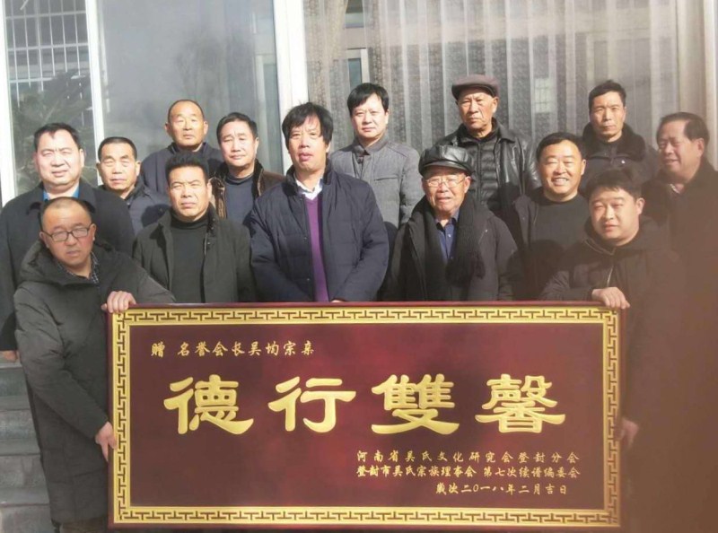 春节来临之际,河南省吴氏文化研究会登封分会理事会,在会长吴建华带领下慰问德高望重的宗亲,给为吴氏家族做出巨大贡献的会长吴建华、名誉会长吴均、名誉会长吴文标 、名誉会长吴梅虎送牌额!