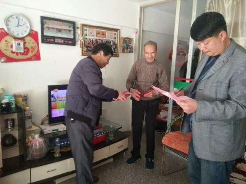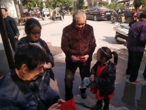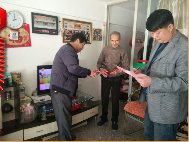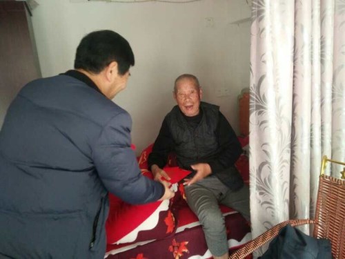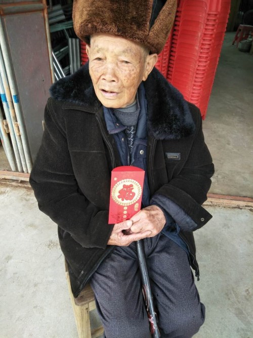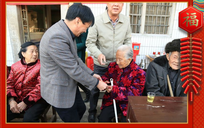 第四个慰问日,2月12日(农历十二月廿七日下午,执委会吴伟忠、吴仁楫、吴德政、吴水龙、吴益兴、吴建霖、吴晓英等一行前往城厢镇墩坂村进行慰问。村两委早早地把受慰问的对象召集到村部。村委会主任和会长吴伟忠分别对老寿星致以春节敬老感言。