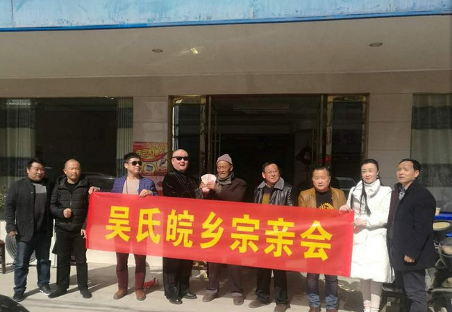 2月13日,再过一天,大年除夕,安徽杰狮隆电子科技公司董事局主席,吴氏皖乡会吴峰会长率队开展新春慰问活动,来到六安舒城县,获悉吴氏缵陵堂重建祖祠,吴峰会长实地考察选址,提出意见建议。慰问了吴氏贫困老人舒城柏林84岁吴之光老人,给予2000元慰问金。