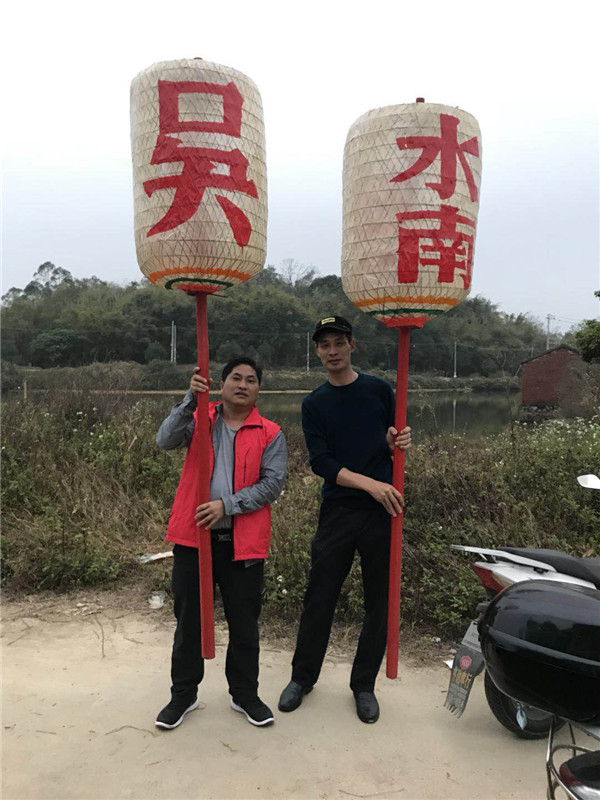2018年2月21日(农历正月初六)早上七点,广东惠州市博罗县湖镇镇水南村吴家族人又迎来了一年一度的买灯节。湖镇镇水南村吴家队伍扛着吴家大旗、穿着整齐的服装、打着锣鼓,步行三公里远的路行进到吴家宗祠。