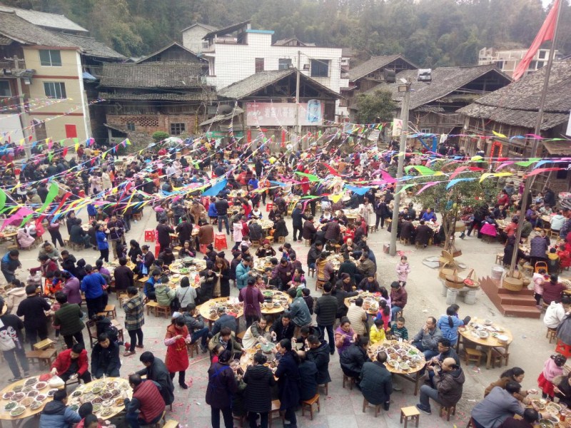春节期间,嫁在外面的姑娘们都要携儿带女回娘家看望父母,看望兄弟,即“走年”,这是传统风俗习惯。今年,广西三江侗族自治县林溪镇林溪村岩寨屯的兄弟们把姑娘回娘家当做一件喜事来办,丰富春节的活动内容。确定正月初四这天,欢迎本寨嫁岀克的姑娘们一起回娘家。寨里备100桌百家宴来款待姑娘和姑爷们到来。