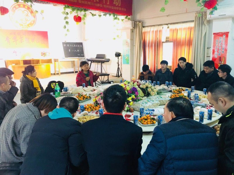 2018年正月初四,池州秋浦文化研究会办公楼一楼大厅内,大圆桌上鲜花盛开,各色食品琳琅满目,来自莲花塘、乌石、宝赛等地的十多位吴氏青年宗亲代表团团坐,参加座谈和联谊活动。会长吴光荣、副会长吴益好参会,秘书长吴红雅主持。