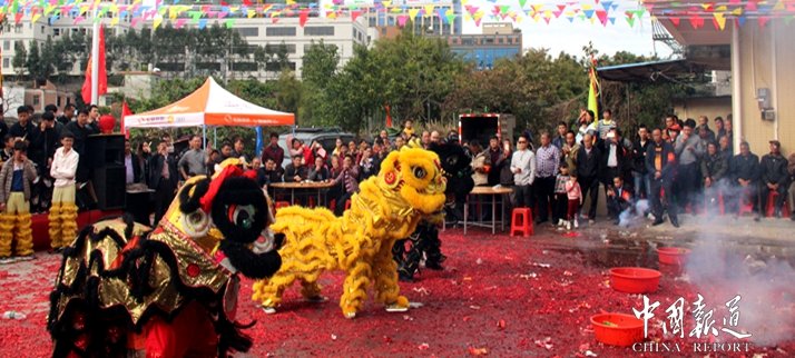 下午五点,吴氏宗亲进行晚宴,一边吃、一边聊,重温家族情。晚宴期间,醒狮起舞,鞭炮齐放,宗亲高歌,翩翩起舞,节目一个接着一个,精彩纷缤,一片节日欢乐的景象。晚上8点进行了烟花汇演,天空中一片灿烂美丽。