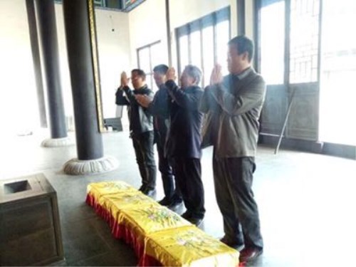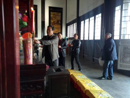 二O一八年二月二十六日,贵州省吴氏宗亲总会学强会长、延陵季子宗亲会才兴会长、张家港市吴氏宗亲会福兴会长、泰伯吴氏祖地宗亲联谊总会明刚副会长、泰伯吴氏祖地宗亲联谊总会办公室锡泉主任等一行到江阴申港季子祠祭拜吴氏十九世祖延陵王季札公。