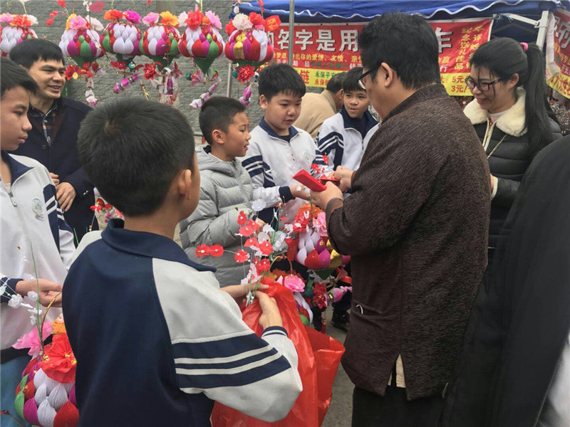 “这么漂亮的花灯,带一盏回家吧。”随处可见义工们举着花灯义卖的身影。据爱心花灯义卖的宗亲介绍,花灯义卖所筹集的善款将存入“一元孝德基金”中,用于帮扶困难群众和发展孝德文化两方面。吴锦添会长走到一个几个小朋友举办的“爱心花灯、快乐善行”的摊档口,除了进行义卖捐款外,还给这几个进行义卖的小朋友派发节日红包。用行动践行了泰伯基金会“孝德宗谊”的宗旨。