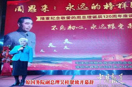 中国报道记者吴蜀丰特约通讯员 吴燕平 吴裕增3月4日,不忘初心,永远跟党走!“周恩来:永远的榜样!——纪念敬爱的总理诞辰120周年座谈会!”在深圳市福田区春满园酒店隆重举行。原国务院副总理吴桂贤﹑厦门吴氏宗亲会,潮汕吴氏宗亲会,东莞吴氏宗亲会,深圳吴氏宗亲会,两陆吴氏宗亲会香港吴氏宗亲会,珠海吴氏宗亲会,广州增城吴氏宗亲会,吴川上郭吴氏族吴氏宗亲代表在深圳参加"隆重纪念周总理诞辰120周年,毛泽东思想永放光芒"活动。