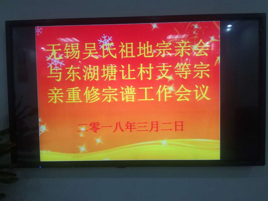 2018年3月2日,恰逢元宵佳节,无锡祖地东湖塘让村支吴氏宗亲相聚于无锡吴氏祖地宗亲会会议室,再次隆重召开无锡吴氏祖地宗亲会东湖塘让村支重修宗谱会议,会议主要研究了迫于眉睫的若干事宜,要求责任到人,按期完成。一是明确了宗谱校对存在的具体问题,要求在7月上旬全部出齐宗谱清样,并将校对的世系图和世次表下发各位宗亲核对。二是探讨了谱序以及修谱捐款事宜、修谱工作人员组织机构名单等问题。三是开始筹划新谱告成仪式盛典具体事宜,并将工作做了具体安排。