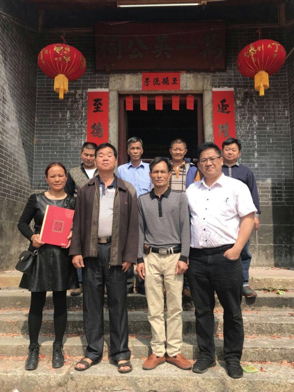 据悉,此次广州从化共星村吴木源寻根访祖团队的成行还源于一段“佳话”。事情得从2018年2月25日(农历正月初十)在从化太平场太湴塱村举行的《2018年第二届广州吴氏春节联谊会》上说起,香港泰伯基金会常务会长、珠三角吴氏宗亲总会会长吴锦添在这次重温家族情的联谊上,从吴木源等宗亲口上得知,他们支系族谱记载有念一公,但祖墓、祖祠不知在哪里?吴锦添会长知道这个寻根问祖信息后,在联谊会期间专门找了几个年长的宗长一起座谈了解,还亲自到传说中曾经有宗祠遗址的地方现场察看,了解情况、查阅从化吴木源宗长赠送给吴锦添会长的从化吴氏族谱资料。再联想起,2017年7月22日,珠三角吴氏宗亲总会会长吴锦添,珠三角吴氏宗亲总会执行会长吴锦方(深圳)、珠三角吴氏宗亲总会执行会长兼秘书长吴昌禄;惠州市罗浮山水泥集团有限公司董事长兼博罗县吴氏宗亲联谊会常务副会长吴国强、珠三角吴氏宗亲总会副会长吴百祥、吴卫忠(惠州博罗),珠三角吴氏宗亲总会副秘书长吴章耀(深圳)、吴伟光(惠州博罗)、吴志坚(惠州博罗)、吴光辉(惠州博罗)、吴国梁(惠州博罗)等宗亲,带领珠三角吴氏宗亲总会、香港泰伯基金会、博罗县吴氏宗亲联谊会、博罗县吴氏志愿团联合在惠州博罗开展“关爱贫困老人、奉献吴氏爱心” 珠三角地区吴氏爱心公益行第二轮活动时,曾经慰问的湖镇镇水南村9O岁特困户吴家金,61岁特困户吴桂环;这两户贫困户的房屋就在念一吴公祠的前面。在慰问期间还考察过念一公祠,于是向吴木源宗亲建议抽时间过湖镇寻访印证。此后吴木源宗长记在心上,于3月2日组织了这次寻根访祖团。
