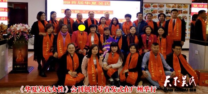原标题《孝德联宗谊 巾帼心向党 携手新时代 首届华夏吴氏新时代女性“三八”论坛暨《华夏吴氏女性》会刊创刊号首发式在广州举行》,2018年3月8日,首届华夏吴氏新时代女性“三八”论坛暨《华夏吴氏女性》会刊创刊号首发式在广州南方医科大学内大吉领宾馆隆重举行。吴晓恒将军、《华夏吴女集》主编吴志刚、河南省吴氏文化研究会会长吴天玺等人经应邀出席了仪式,并发表了重要讲话。