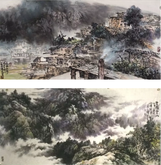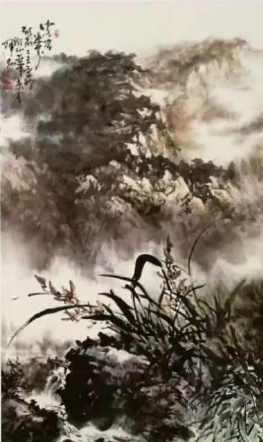纵观吴辉忠的作品,气韵生动,神形涌溢。无论着墨、敷彩、落笔用线、点染积皴,都把墨韵肌理、笔触,发挥得淋漓精致,被他自称为“拖墨带水”、“见笔云”的表现手法尤为独特,直逼传统山石皴擦的技法。他的山水画大而不空、有势有质,即有开阔视野,近观质朴。大气势、大笔墨,又不遗余力把握细节。远观则山峦厚实、云雾飘逸,近看则树木苍郁、草苔青翠;远有气势、近具质味。个性十足,内涵丰富、运笔得心应手,静溢虚渺,能入“神驰清幽之地”。