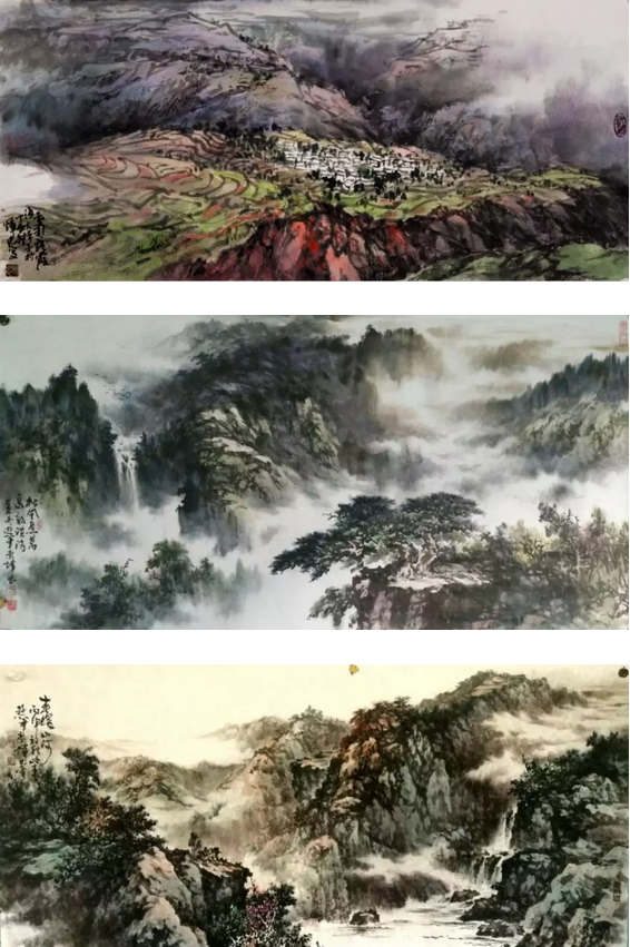 显然,学画者仅凭努力,断不能造优秀绘画,灵性、智慧和观察、体验不可或缺。吴辉忠摹学古人,或悟其酣畅淋漓、纵逸奔放之风;或悟其空灵禅意、静逸飘渺之功。他也研学当今许钦松、马流洲等大家,前者得其气势磅礴,气吞山河之概,天光与云彩之法;后者得其生机盎然、超凡脱俗之妙,清新明丽之风。广州美术学院教授曾松龄以其画理学养对其笔墨亦多有建言点拨,使他受益匪浅。正是师造化成己用,学众家而成自形。