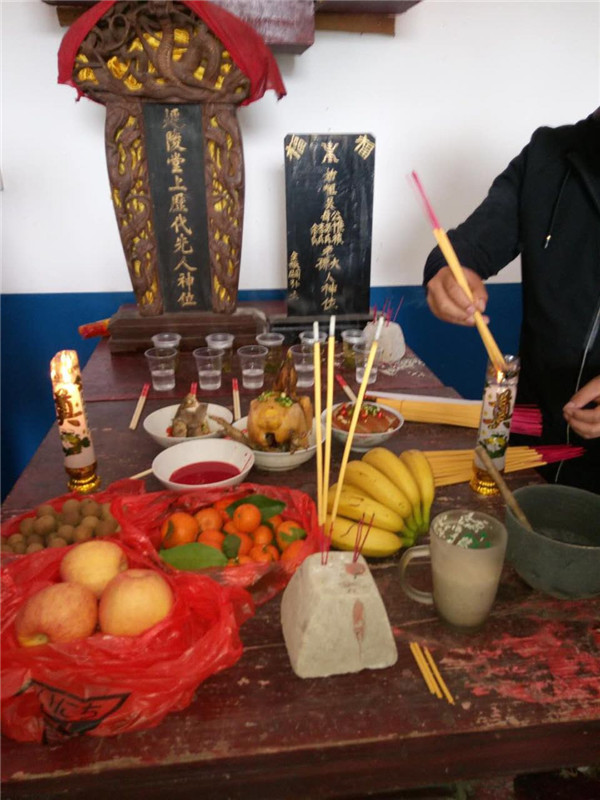 寿诞之吉日良辰,各房支裔孙代表齐聚祖祠雍嘉岭旁新桥吴氏十一世增字小手吴新桥家,谨以三牲酒醴,香猪果品不腆凡仪,陈祭于我徙湘始祖惟桢公之神主位及延陵堂上历代先人神位前而告以文曰: