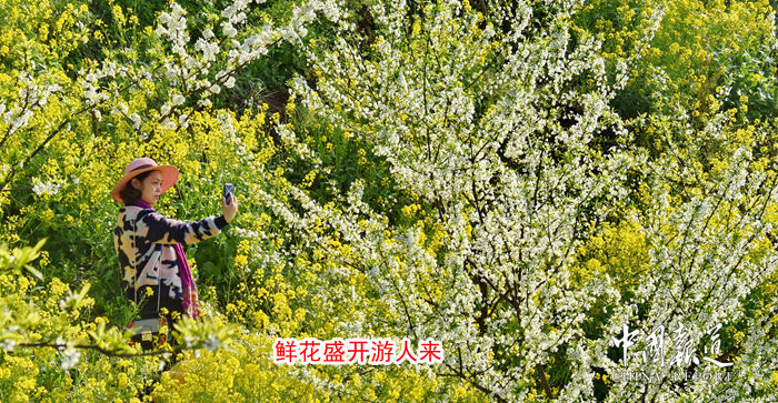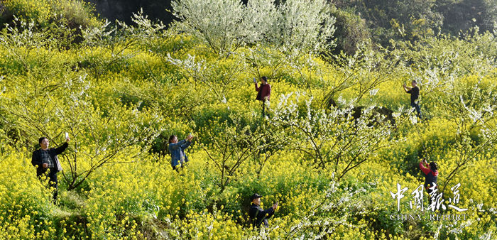 中国报道讯(特约通讯员 蒋焰)2013年,重庆市綦江区石角镇千秋村村民罗开伟回乡,在海拔900多米的老瀛山承包了400多亩荒山,种植经果树3万多株,还经营起农家乐。目前,果园已到盛果期,年收入达2百万元。近日,果园开满了鲜花,来此赏花的游人络绎不绝。