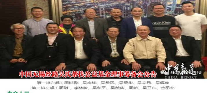 中国无锡丝路吴氏帮扶公益基金理事筹备会公告