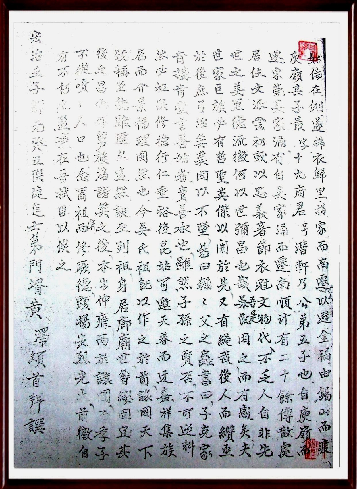 在2012年5月份,老吴借给我阅读,获益深矣,并即时用数码相机拍照收藏。现经他的同意,把《吴居厚之子潜轩支谱序(黄泽谱序)》(图1和图2)照片公开报导,以郎飨读者。