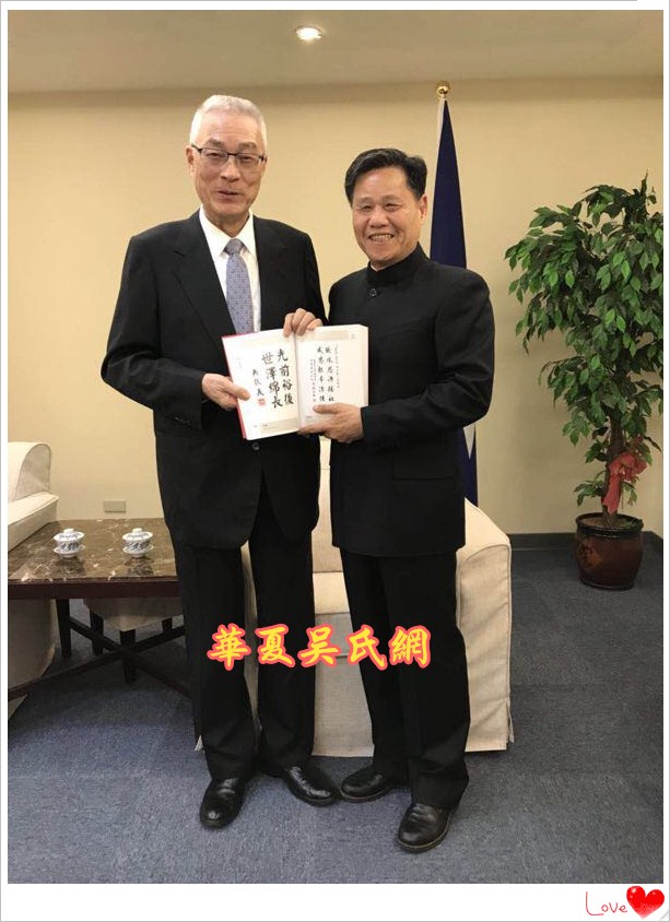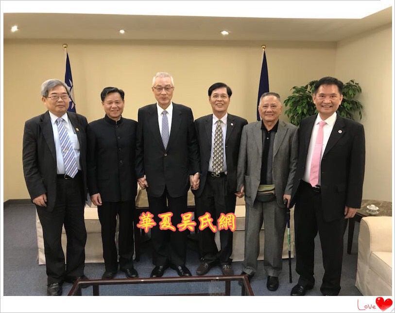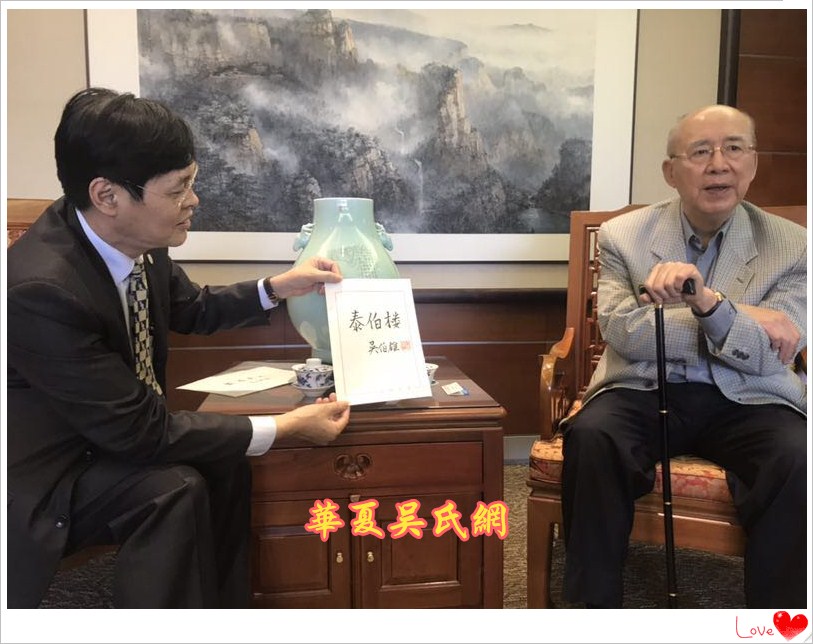 2018年3月28日上午10点,中国国民党荣誉主席吴伯雄宗贤,亲切会见了世界吴氏宗亲总会二届主席吴良民宗长、厦门市吴文化研究会会长吴国荣博士、台湾桃园吴姓宗亲会顾问吴国祯、东莞吴氏宗亲会荣誉会长吴铭煜、厦门吴氏宗亲会顾问吴燿旭。