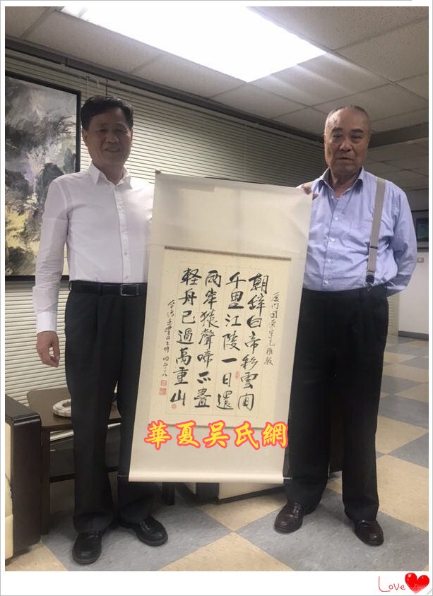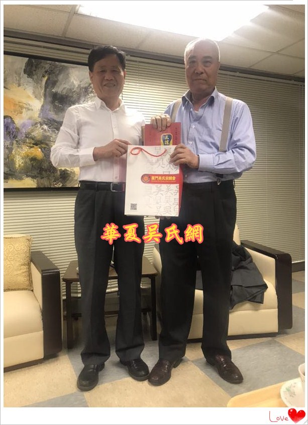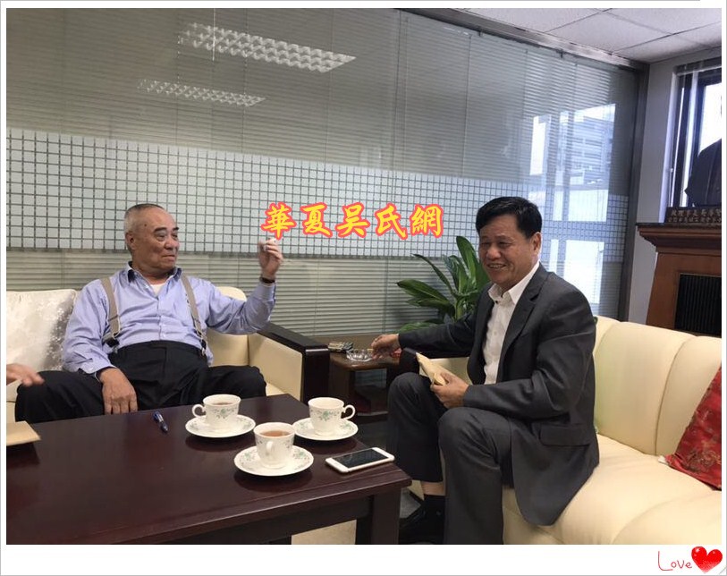 2018年3月29日上午10点30分,台湾吴姓宗亲总会会长吴丰山和秘书长吴景瑞等人,在台北南京东路215号泰伯大楼,亲切会见了世界吴氏宗亲总会二届主席吴良民宗长、厦门市吴文化研究会会长吴国荣博士、台湾桃园吴姓宗亲会顾问吴国祯、东莞吴氏宗亲会荣誉会长吴铭煜等宗亲。