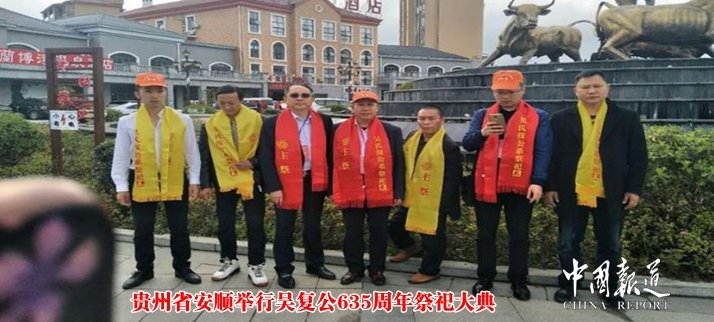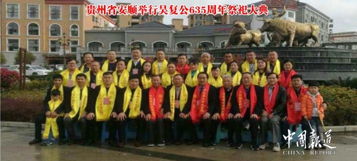 中国报道讯(吴蜀丰报道 特约撰稿吴青柠 )2018年4月1日,星期六。贵州安顺的天气有点怪,夜里和早晨还下着大雨,吃早饭时就大雨渐止,天气转晴到多云,可能老天有眼,祖上保佑。来自安徽、湖南、贵州、湖北、云南、广西6省(区)的明朝开国元勋吴复公后裔500多人在贵州安顺举行吴复公去世635周年祭祀大典。