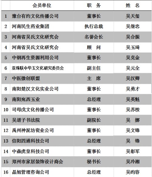 本次会议由河南省吴氏文化研究会主办、吴村人陶器有限公司承办,会议由执行会长吴继忠主持,会议总指挥:吴继忠 ,会议总顾问:吴冷湘,会议秘书长:吴义财,会议秘书:吴辉、吴昀容。