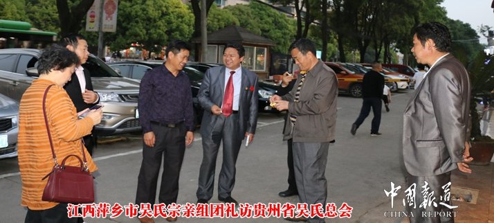 中国报道讯((特约采编 吴忠致 吴天友 ) 4月3日,贵阳的天气就像诗句中:春雨丝丝,愁肠百转,杨柳摇拽,春风轻拂。天阴沉沉的,淅淅沥沥的小雨,如丝如般飘落在大地上,整个大地都笼罩在“春”的海洋里。江西省萍乡市吴氏宗亲吴兆萍董事长率华吴副主席,吴东萍副会长及夫人,江西泰伯庙筹建组委会吴建纯福总指挥和吴展声理事等一同前来贵州贵阳,对贵州省吴氏宗亲总会进行拜访慰问,在爱的海洋里建起友谊的桥梁。贵州省吴氏宗亲总会会长吴学强,副会长吴天友等领导同志对江西慰问团的到来表示热烈的欢迎,并致欢迎词。