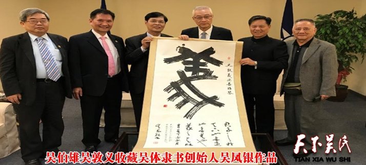 2018年3月28日下午,吴良民、吴国荣、吴国祯、吴铭煜、吴燿旭,拜访现任的中国国民党主席吴敦义。拜访中,吴良民向吴郭义赠送了由吴风银(又名吴凤银)的吴体隶书作品,以及大篆“义”字。以彰显吴敦义义薄云天,高举民族大义之旗的“义”之品质。