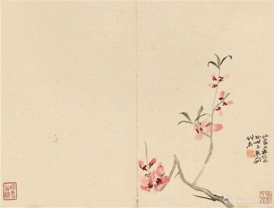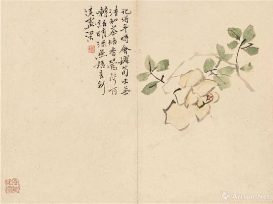 杨法(1696—约1762后),南京人,诗书画印兼擅。他传世画作极少,扬州博物馆藏其两片册页,一写月季,一作绣球,设色小写意,在“勾花点叶”派基础上略有变化。故宫博物院藏其墨花册,笔墨简放,略类青藤,署款“丙子”为乾隆二十一年,其年六十一。