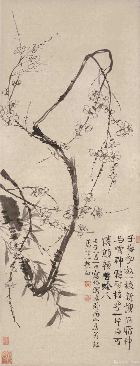 汪士慎 墨梅 90.5×35cm 纸本水墨