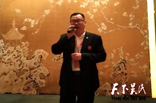 天下吴氐讯(吴蜀丰 )2018吴文化“亲情中华”泰伯祭祀大典4月10日在江苏省无锡市新吴区泰伯陵文化广场成功举办。在当晚答谢宴上,当中华吴氏宗亲总会主席吴文富热情洋溢的答谢辞刚完,在潮水般掌声中,国家一级词曲作家、独立音乐制作人吴仕长再次唱响《中华吴氏》。