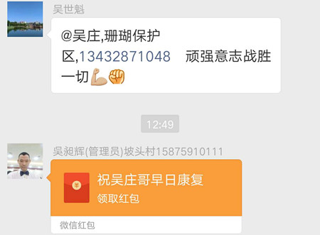 为帮助吴庄宗亲度过难关,发扬一方有难,八方支援的优良传统及我吴氏大爱互助精神,经徐吴会(筹)理事会讨论决定:由本群发起为吴庄宗亲捐款的倡议,并在本群进行捐款接龙。捐款由朝芳(手机号:13553480778)及志达(手机号:15218266499)两位宗亲代收,