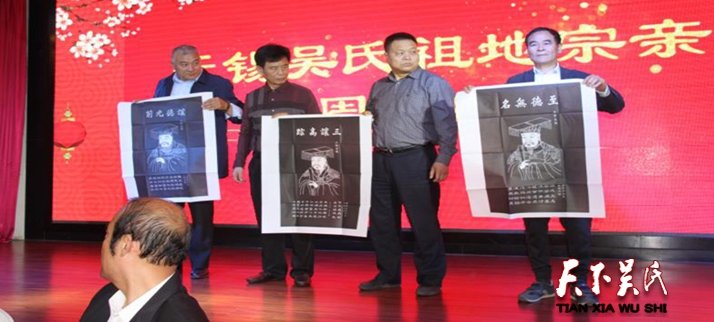 吴健龙任司仪:吴乐一任执事,吴仁兴(东亭)、吴强(港下)主祭有泰伯吴氏祖地宗亲联谊总会会长、各分会会长以及邀请本市领导、外省吴氏宗亲:吴新、吴立兴、吴仁山、吴福娇、吴天赐、吴才兴、吴再兴、吴福兴、吴林春、吴文新、吴年、吴士清、吴仁德、吴仁兴(常州)、吴文龙、吴志刚、吴明龙、吴明泽、吴亚南、吴国强、吴银兴、吴学强、吴纪南。陪祭有全体列会宗亲代表。祭祖大典结束后,无锡吴氏祖地宗亲会周年庆在无锡东亭弘历皇朝大酒店举行,会议由无锡吴氏祖地宗亲会副会长吴敏主持。泰伯吴氏祖地宗亲联谊总会会长吴立兴致欢迎词,吴仁山作无锡吴氏祖地宗亲会2017年工作报告;办公室主任吴仁兴作财务报告;吴天赐作重要讲话!老领导吴建选讲话;总会长、各分会长上台领“泰伯奔吴”台像;颁发新聘任无锡吴氏祖地宗亲会副会长聘书。